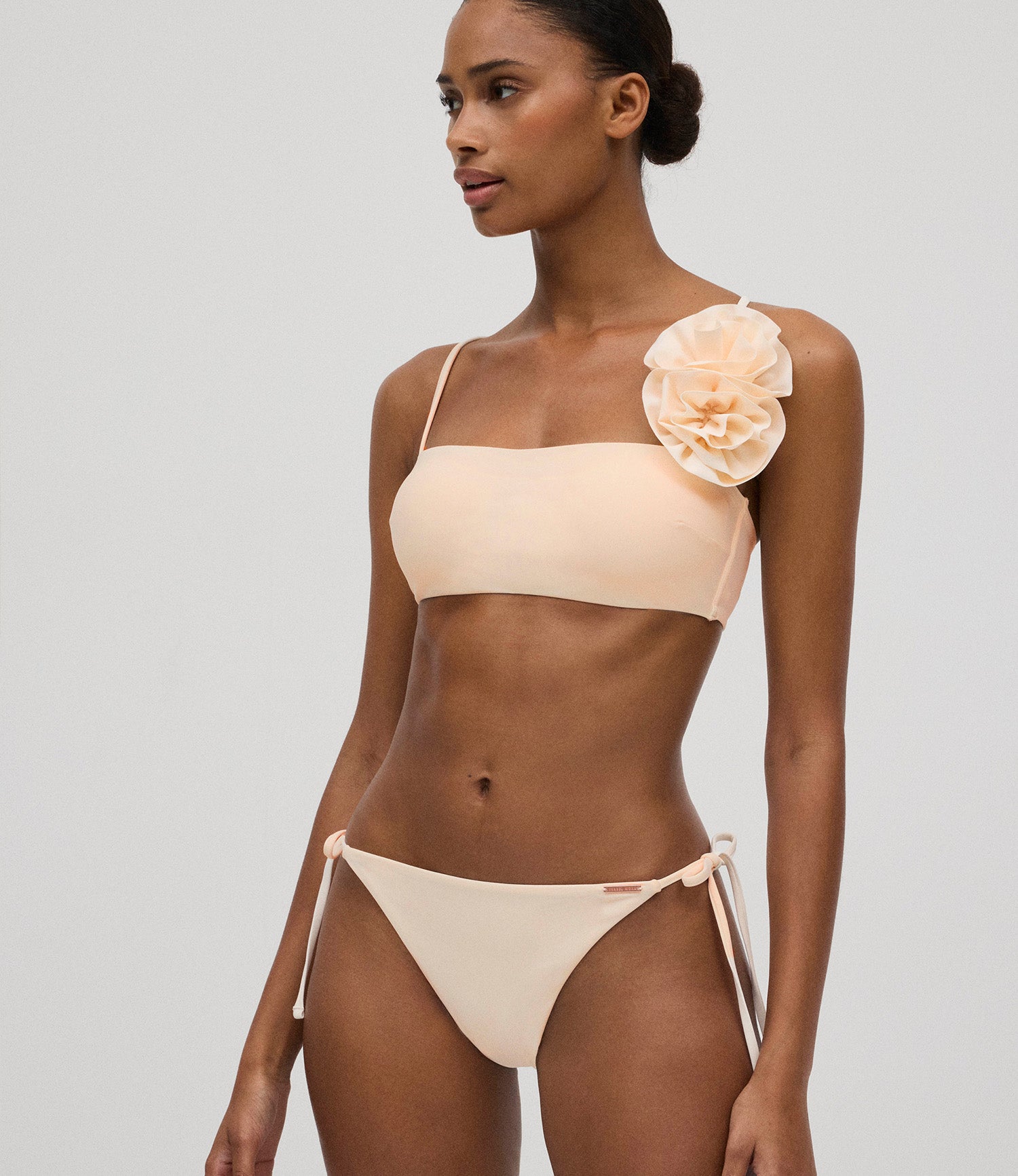 Use brighter colours or prints on the bottom of the bikini or swimming costume. This will draw the eye to the hips, creating the appearance of more volume.